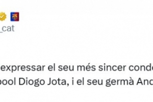 巴萨官推写道:“巴塞罗那足球俱乐部对利物浦球员若塔及其兄弟安德烈的去世表示深切哀悼,愿他们安息。”